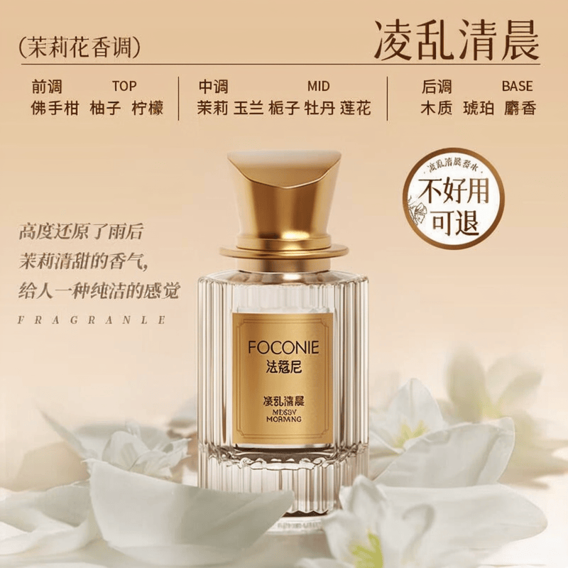 法蔻尼调香师香水(凌乱清晨)以持久留香著称,能够持续让您散发迷人的气息长达72小时。它的香调以优雅的茉莉花香为主,搭配多种花香,使得整款香水散发出独特的女性魅力,仿佛每一步都在踩踏花海,让人回味无穷。
